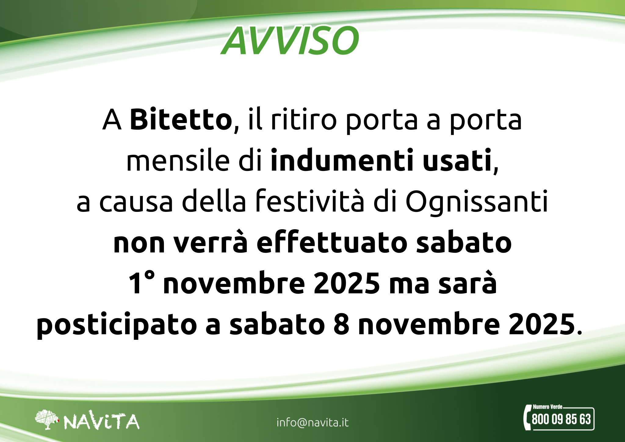 Proroga ritiro indumenti usati – Bitetto